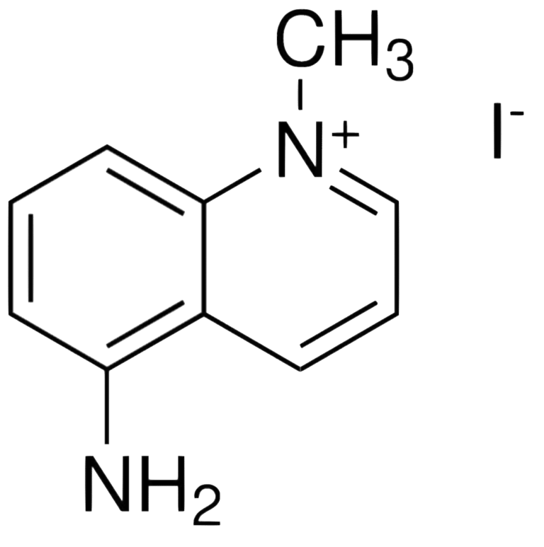 5-Amino-1MQ is a selective inhibitor of NNMT, an enzyme involved in regulating cellular methylation balance and energy metabolism¹⁻³. Elevated NNMT activity has been associated with obesity, insulin resistance, and reduced metabolic efficiency. By inhibiting NNMT, 5-Amino-1MQ increases intracellular NAD⁺ levels and enhances metabolic activity: